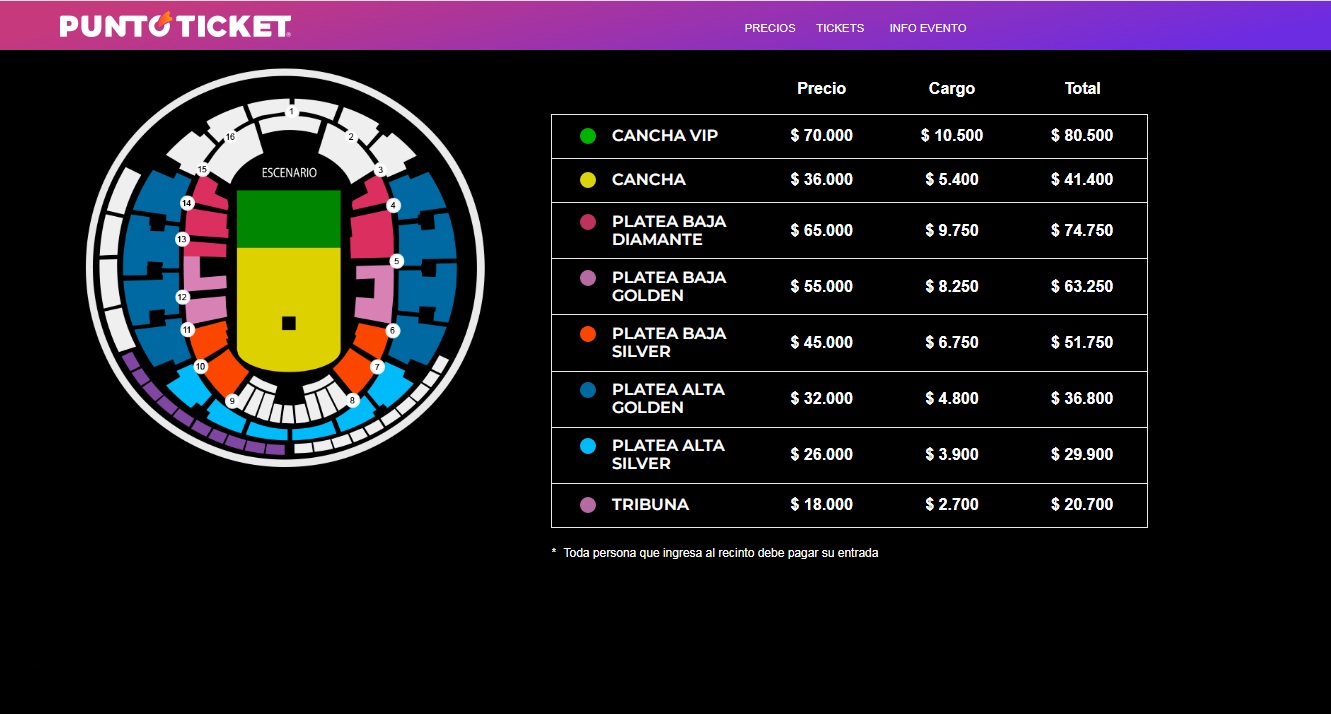 Los precios de las entradas van desde los $20.700 hasta los $80.500.