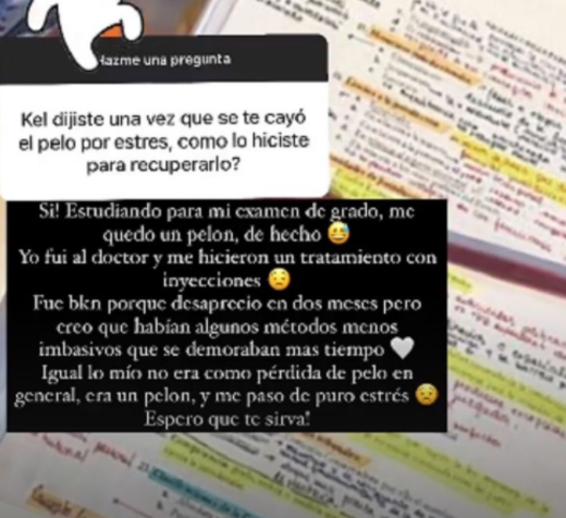 "Estudiando para mi examen de grado, me quedó un pelón de hecho", comenzó contando la joven.