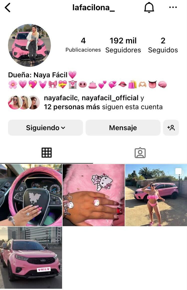 Naya Fácil se caracteriza por llevar una vida muy apegada a sus seguidores, con quienes comparte todas las cosas que le suceden día a día, sean buenas o malas. Y en esta oportunidad fueron buenas, porque la influencer realizó dos publicaciones con su "nueva" adquisición, que bautizó con "La Facilona".  La influencer hizo la compra de este primer auto hace meses atrás, cuando lo presentó como "El Facilón" y su color era negro. Sin embargo, ahora tiene con un look completamente renovado. Se trata de un vehículo modelo Ford completamente rosado que la joven compartió a través de sus redes sociales. En el registro se puede ver que todos los accesorios del jeep son rosados: ruedas, asientos, manubrio y el llavero del auto. Y hasta una cuenta de Instagram le creó.