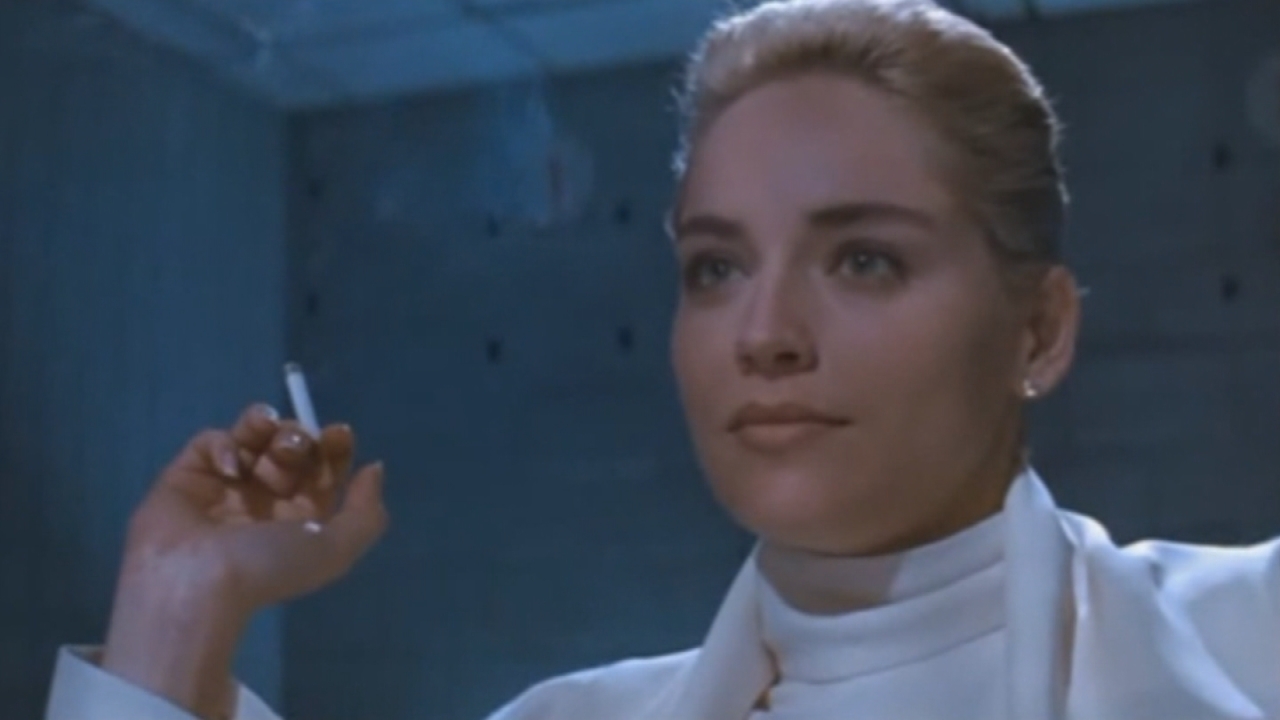 Imagen que es sólo una de las muchas postales de la protagonista de Bajos Instintos (1992).