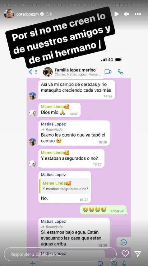 "¿La gente en serio cree que...?": Coté López en picada contra críticas por no publicar nada sobre damnificados