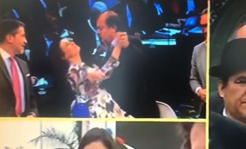 Vidal se estaba despidiendo uno a uno de los panelistas, hasta que de pronto llegó donde la animadora. Ella se lo encontró de frente, por lo que comenzó a correrle la cara hasta que finalmente se despidieron de un beso en la mejilla.