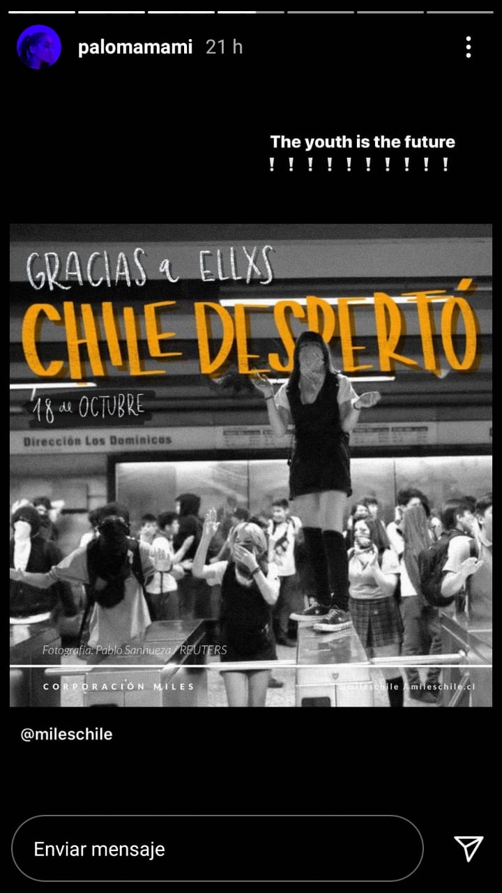 "La juventud es el futuro": Paloma Mami compartió imágenes referentes al estallido social