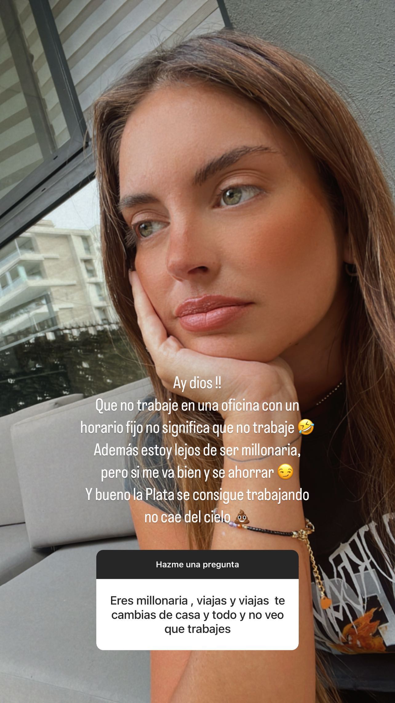 Luego de iniciar una dinámica de "preguntas y respuestas" en su cuenta de Instagram, la actriz e influencer se detuvo en un particular comentario que hizo directa alusión a sus viajes y estilo de vida.