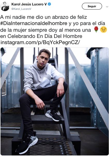 A raíz de esto, Karol Dance decidió publicar en Twitter e Instagram que nadie le dio un abrazo por el día, y agregó que para el Día Internacional de la Mujer él siempre entrega, al menos, una rosa.
