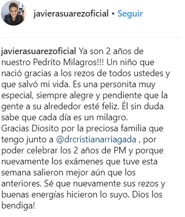 Te puede interesar: El desahogo de Javiera Suárez contra los trolls en Instagram: Tuvo que borrar video de su hijo“Nuevamente los exámenes que tuve esta semana salieron mejor aún que los anteriores”, fue lo revelado por la periodista hace un mes en Instagram.