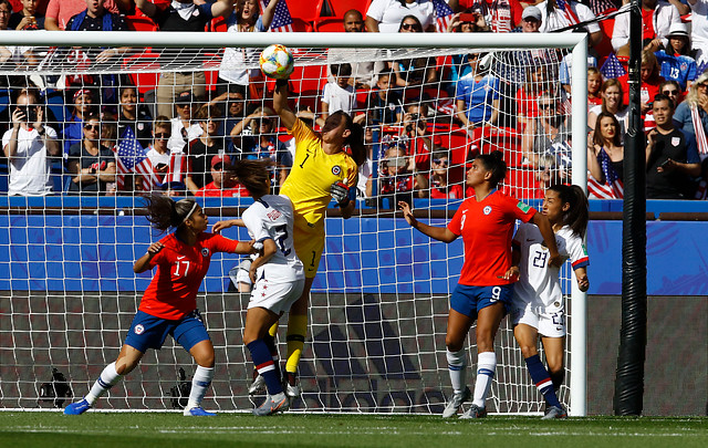 El primer gol cayó a los 11 minutos del primer tiempo. Poco y nada pudo hacer Christiane Endler tras el fuerte remate de Carli Lloyd que dejó estática la portera nacional.