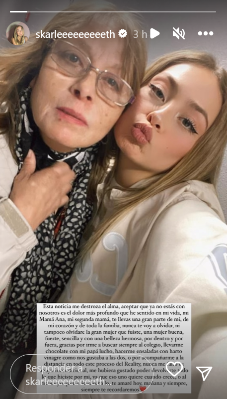 "Esta noticia me destroza el alma. Aceptar que ya no estás con nosotros es el dolor más profundo que he sentido en mi vida, mi mamá, Ana, mi segunda mamá.
