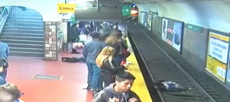Un hombre se desmayó y sin querer terminó empujando a esta mujer. Fueron momentos de desesperación, ya que el tren venía justo ingresando a la estación.
