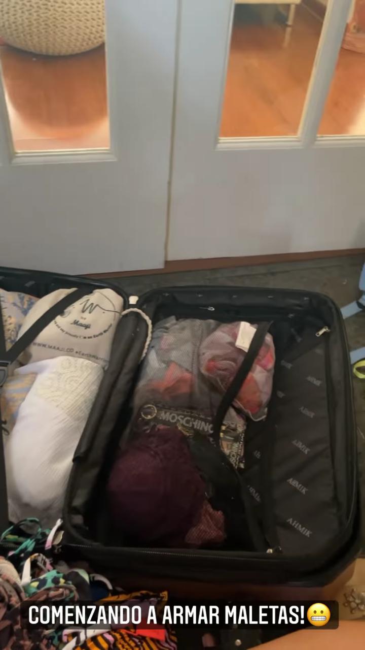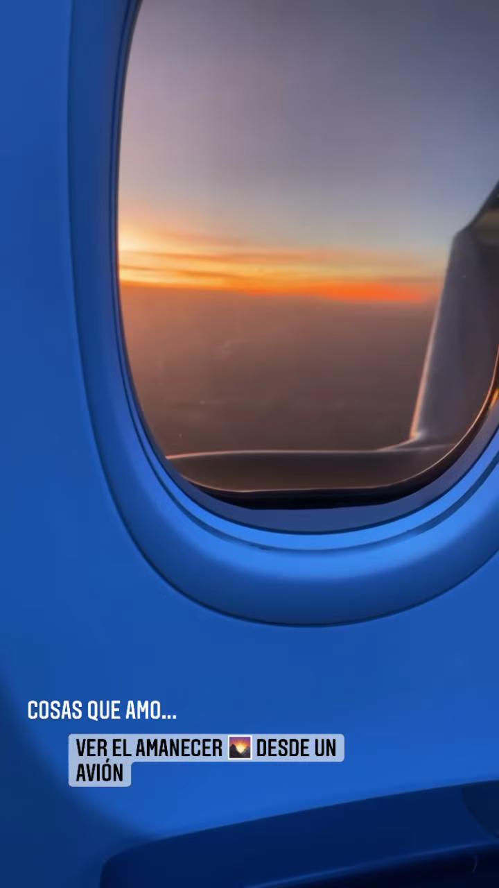 La influencer publicó una serie de historias detallando poco a poco su travesía. En ellas mostró su maleta y luego la puesta de sol que vio desde el avión.