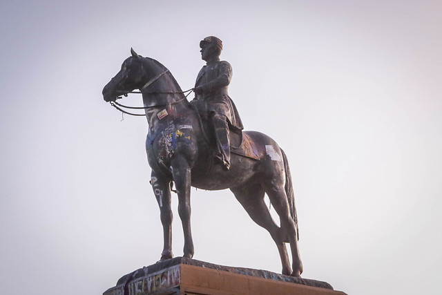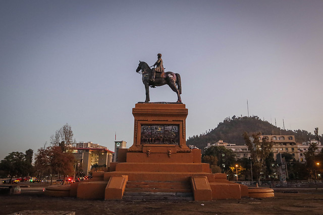 La estatua del general Manuel Baquedano, que se encuentra en el centro de Plaza Italia, fue limpiada durante la madrugada de este jueves en medio del estado de catástrofe decretado por el presidente Sebastián Piñera y que comenzó a regir a las 00:00 horas.
