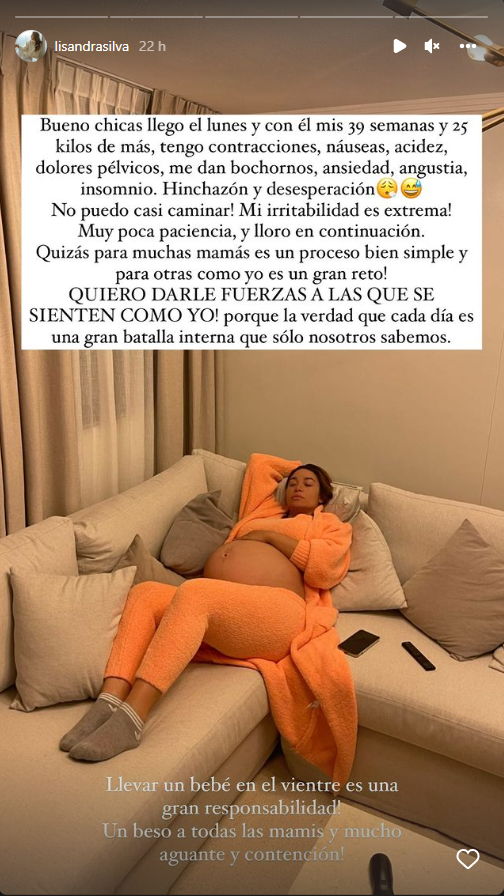 Lisandra Silva revela complejo momento a sus 39 semanas de embarazo: "No puedo casi caminar"