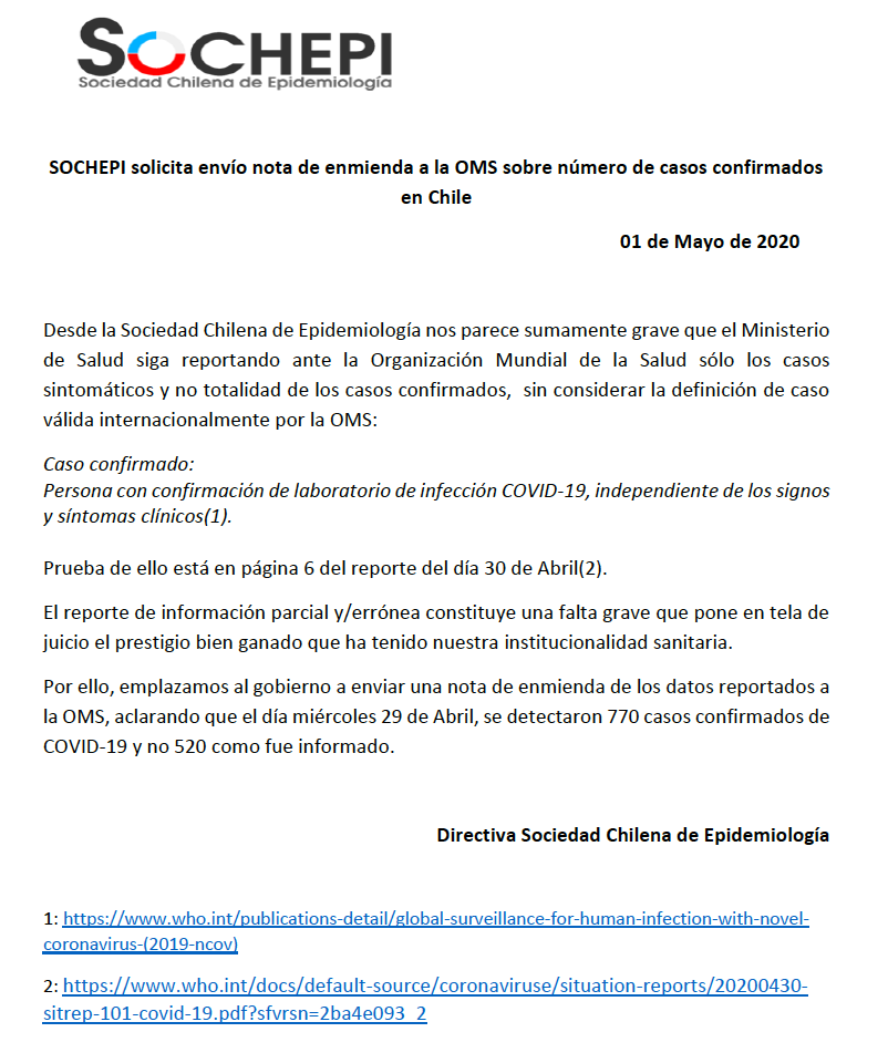 Sochepi solicita al gobierno “enviar una nota de enmienda de los datos reportados a la OMS”