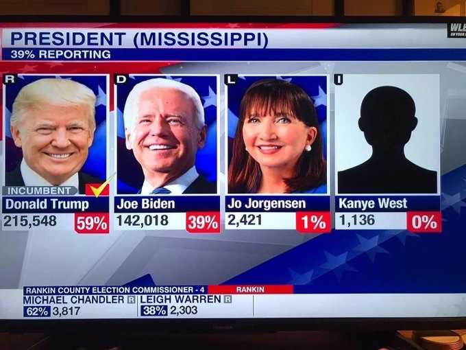 HOW DO THEY NOT GOT A PICTURE FOR KANYE WEST 😭😭#Election2020 #AmericaDecides2020 # pic.twitter.com/xWqwe2Ig0j— Richard Mofe-Damijo ➐ (@OfficialRMD_) November 4, 2020
