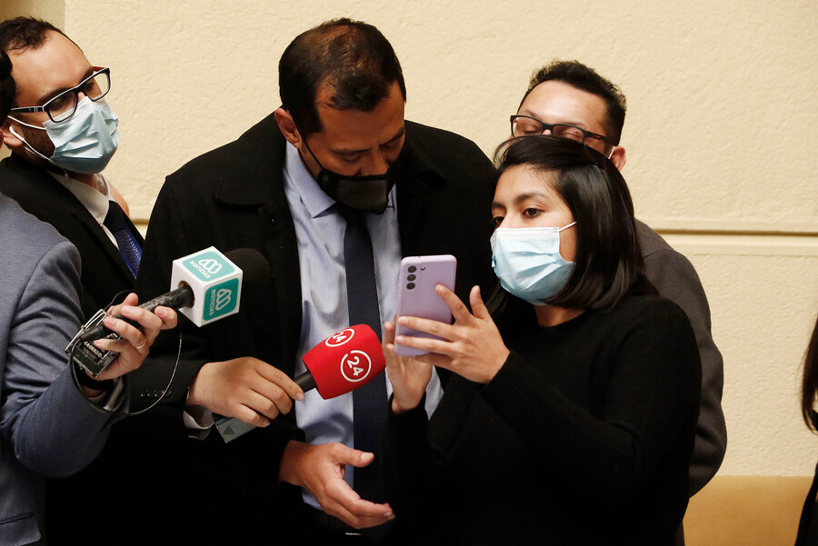 En la instancia, se preparaban para aparecer también ante la prensa otro grupo de congresistas, Emilia Schneider (Comunes), Maite Orsini (RD) y Camila Rojas (Comunes), quien portaban pancartas con el mensaje "la nueva Constitución protege la niñez. Apruebo".