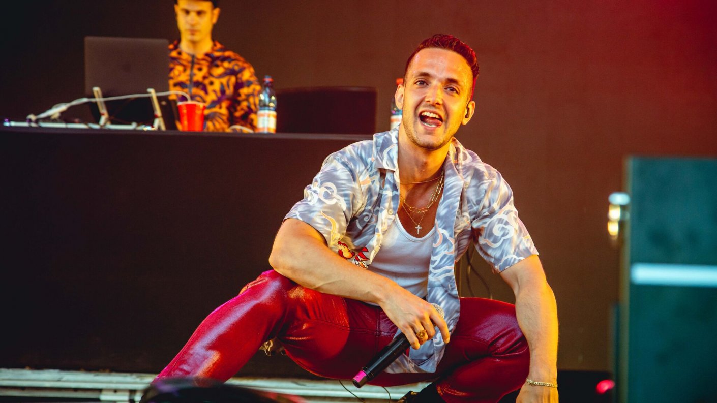 "Todo lo que toco se hace oro, lo multiplico", cantó C. Tangana, apoyado del clásico autotune del trap y de una pista de respaldo, y que en ningún momento paró de saltar y de correr de un lado para otro.