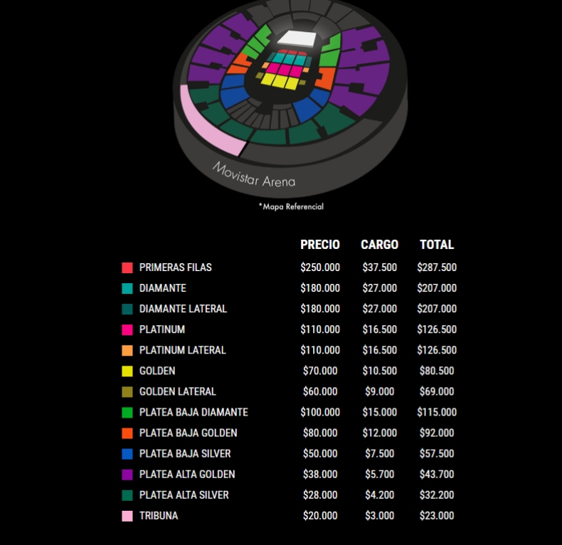 Las entradas están a la venta vía Puntoticket. Hay descuentos para clientes Hites. Los precios son los siguientes: