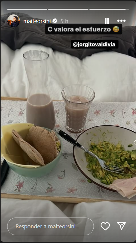 palta molida, jamón y café con leche. Conmovida con este gesto, la parlamentaria escribió en una historia: