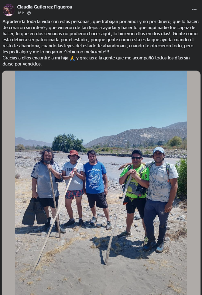 compartió un emotivo posteo en redes sociales, en el que agradeció a los buzos que ayudaron en la búsqueda de su hija y lanzó una crítica contra el gobierno.