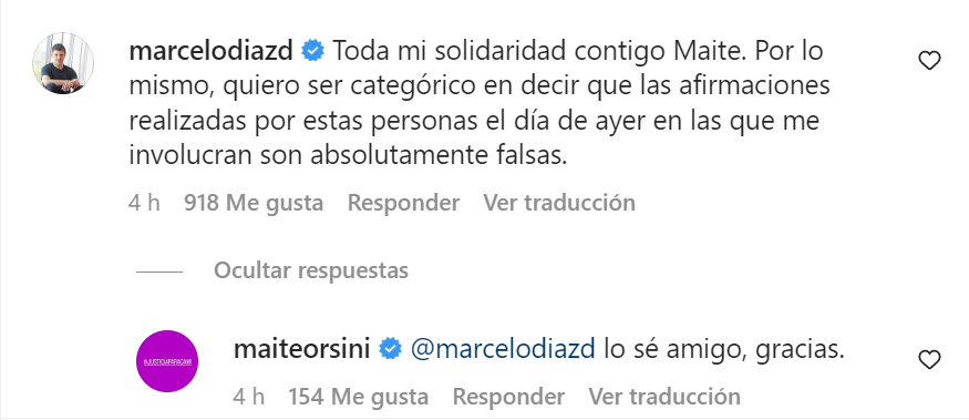 Las palabras de Díaz recibieron la inmediata respuesta de Orsini, quien en el mismo hilo de comentarios de la red social señaló “lo sé, amigo. Gracias”.