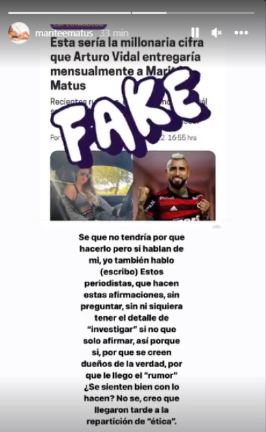 El supuesto monto que supuestamente entrega el jugador profesional a la madre de sus hijos son cerca de 50 millones de pesos, algo que fue desmentido por la modelo a través de una historia de Instagram.