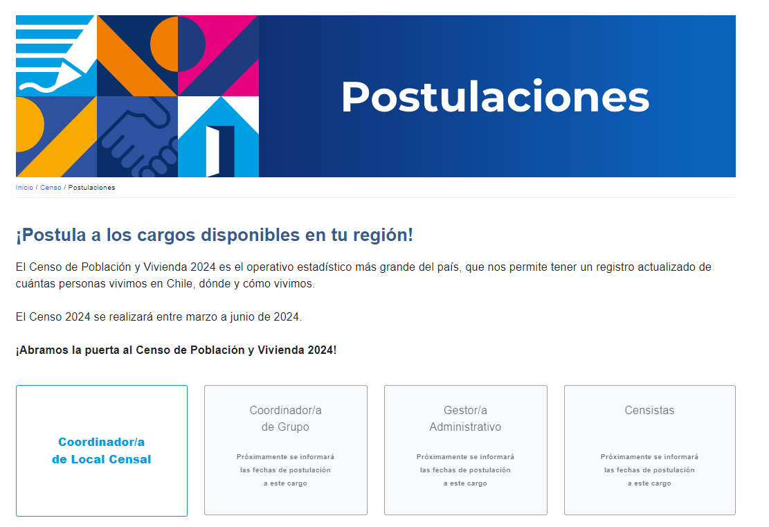 - Ingresa a la página del Censo 2024 y haz click en el banner de "postulaciones"