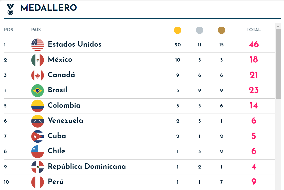 puedes revisar medallero oficial actualizado en la sección Santiago 2023 de