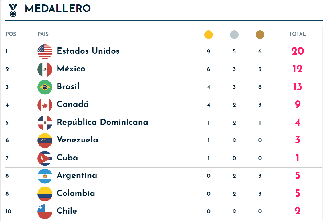 puedes revisar medallero oficial actualizado en la sección Santiago 2023 de