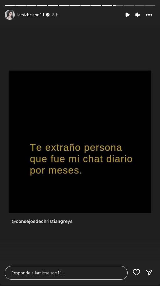 Es así que este domingo le dedicó un certero palo a Matías Muñoz, a quien parece echar de menos."Te extraño persona que fue mi chat diario por meses", posteó en sus stories de Instagram.