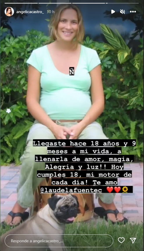 "Llegaste hace 18 años y 9 meses a mi vida. A llenarla de amor, magia, alegría y luz. Hoy cumples 18 años, mi motor de cada día. Te amo", señaló Castro, acompañando todo una imagen en la que está embarazada.