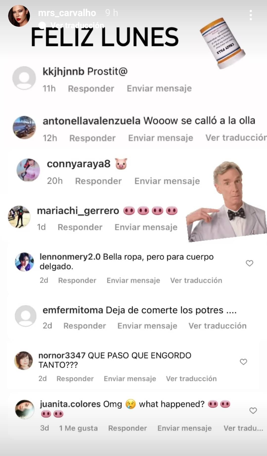 La brasileña compartió en una storie de su red social ocho mensajes que ha recibido en los últimos post que ha subido, en los que las personas se burlan con malintencionadas palabras.