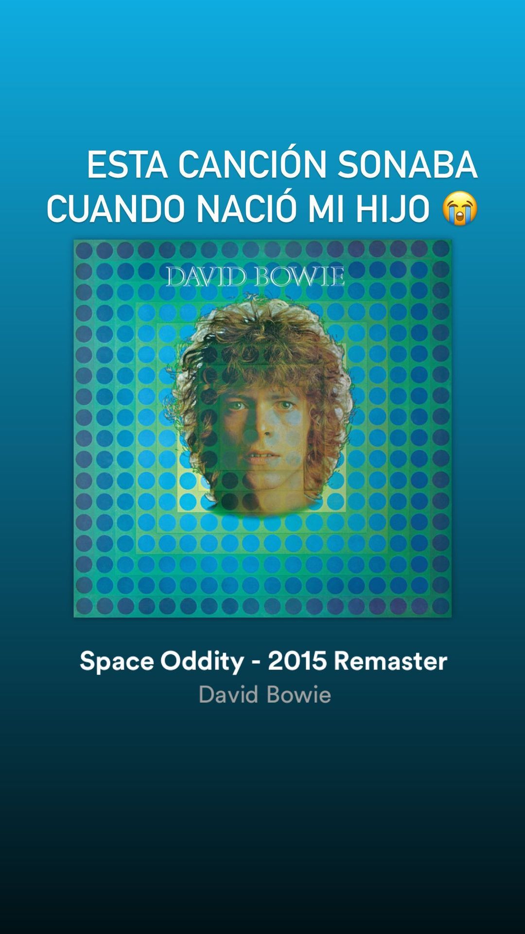 "Esta canción sonaba cuando nació mi hijo", posteó Laferte en stories, donde publicó una foto del tema Space Oddity con un emoji de llanto, apuntando a su emoción.
