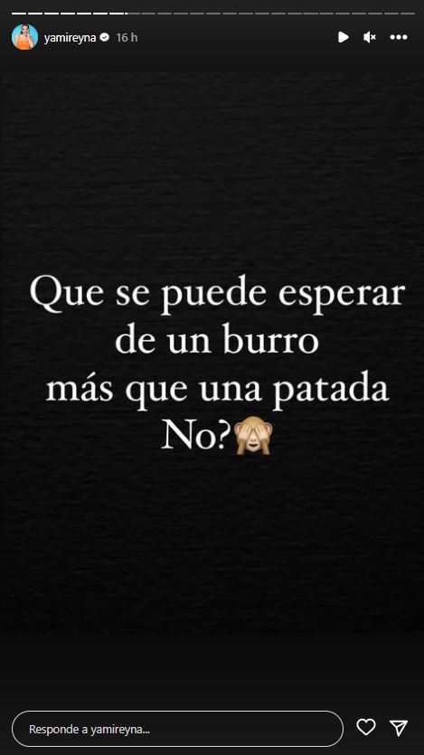 "¿Qué se puede esperar de un burro más que una patada, no?", escribió en sus historias de