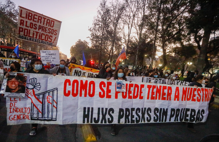 Los asistentes llegaron al lugar para protestar en favor de los denominados “presos de la revuelta”, marchando hacia La Moneda.