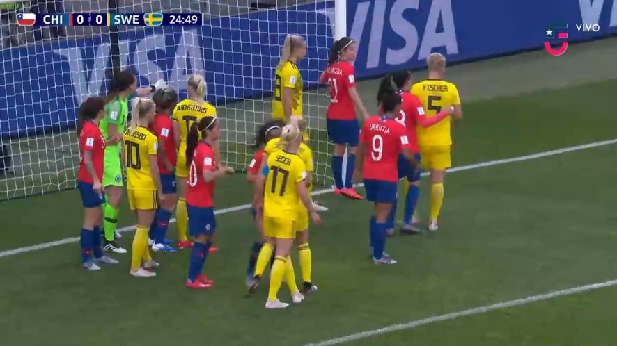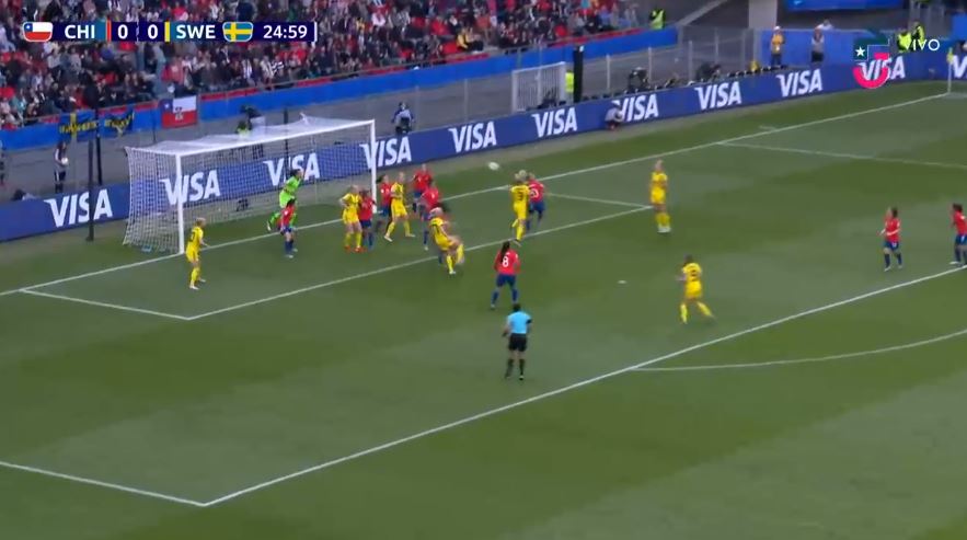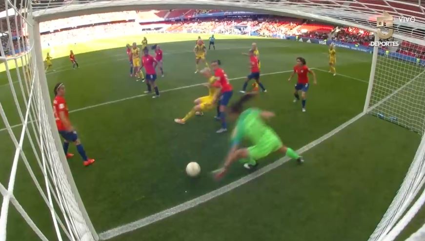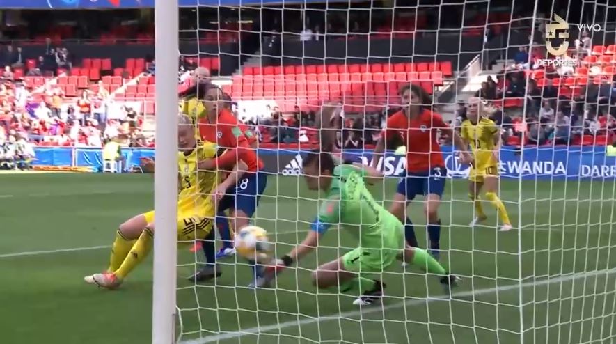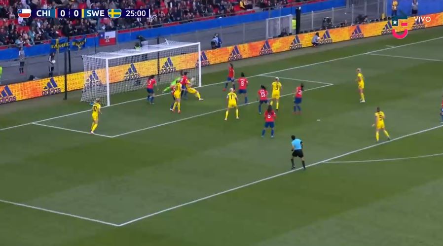 La acción de Endler ocurrió luego de un tiro de esquina de las suecas, donde el área chilena estaba llena de camisetas amarillas y era muy difícil poder reaccionar.