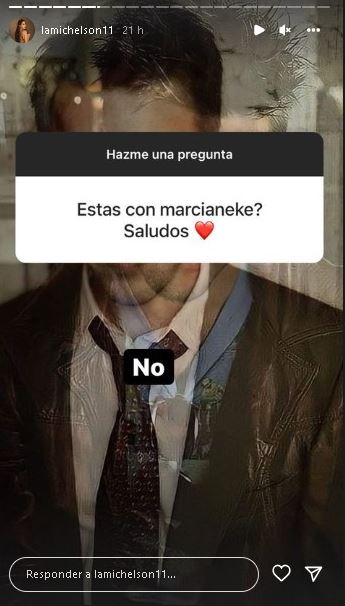 Consultada derechamente sobre si está pololeando con Marcianeke, Michelson sostuvo que "más que nada hablamos y nos decimos ‘ay eres mi amor’. No, eso (pololear) ya pasó de moda. Esto es más moderno (…) Le digo querubín, bebé, mil cosas, jaja".