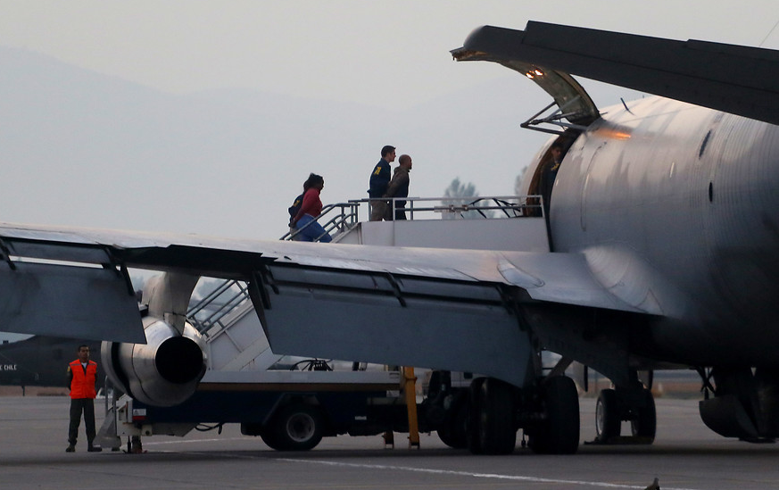 Los colombianos fueron embarcados rumbo a Bogotá en un avión de transporte de la Fuerza Aérea de Chile (FACH) y, según el ministro del Interior Andrés Chadwick, 16 de ellos debieron dejar el país tras haber cometido delitos -10 de ellos relacionados con el tráfico de drogas- y 6 por robos con violencia.