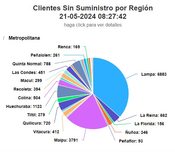 Los cortes se han reportado en 18 comunas de la región Metropolitana, aunque las más afectadas han sido La Reina, Lo Barnechea, Maipú y Ñuñoa. Hasta el momento el servicio se ha logrado reponer paulatinamente.