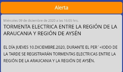 Además, la Dirección Meteorológica (DMC) emitió una alerta para este jueves, porque “durante la tarde se registrarán tormentas eléctricas”; con la opción de truenos, relámpagos, e incluso, algunas granizadas locales, entre zonas de las regiones de Ñuble y Aysén.