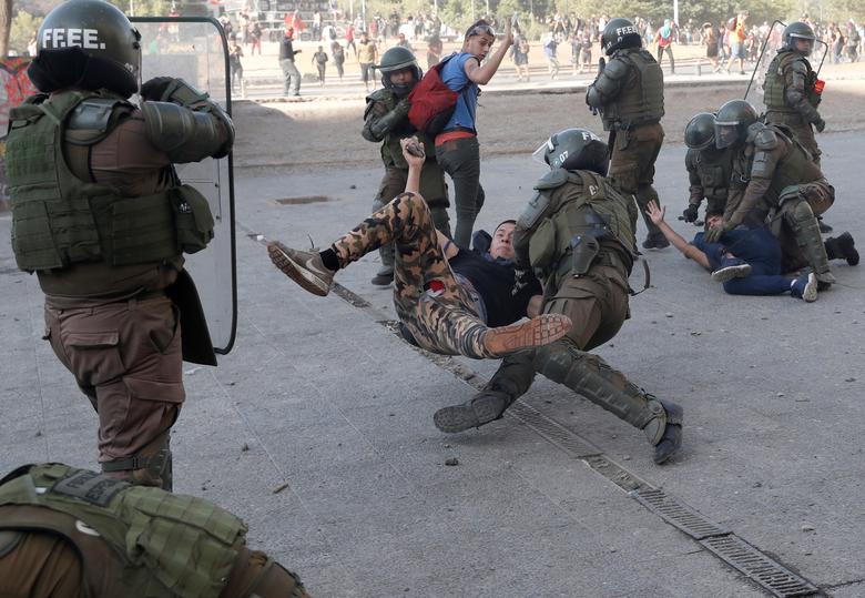 Choque policial con manifestantes durante una protesta contra el gobierno de Chile en Santiago, Chile, 28 de noviembre de 2019. REUTERS / Goran Tomasevic