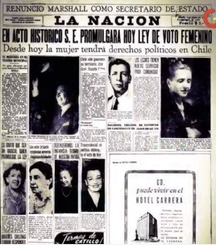 Este logro para las mujeres fue celebrado en un acto público celebrado en el Teatro Municipal de Santiago, donde se firmó la ley Nº 9.292, que consagraba los derechos políticos de las mujeres.