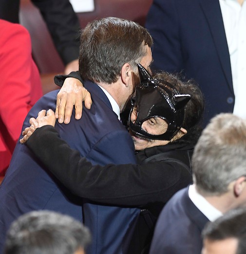 El parlamentario atrajo miradas ya que apareció vestido completamente de negro y con un antifaz felino.