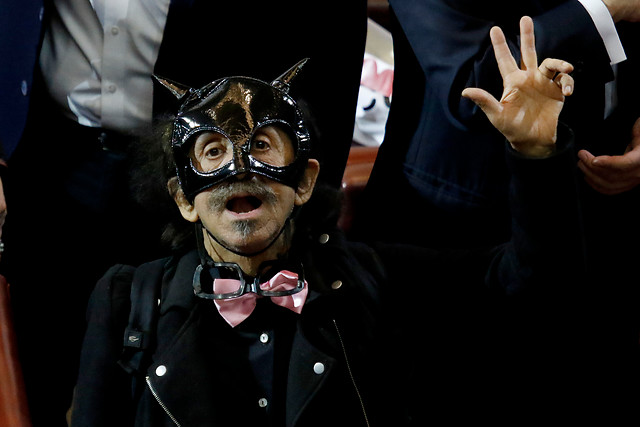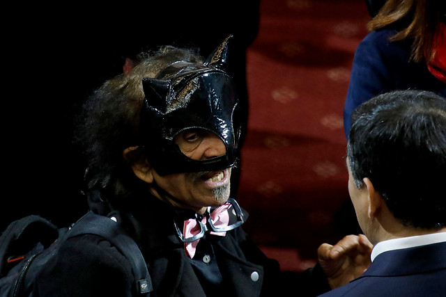 En otras oportunidades han sido sus atuendos extravagantes con capas y antenitas los que han llamado la atención, y en esta ocasión, el parlamentario atrajo miradas ya que apareció vestido completamente de negro y con un llamativo antifaz felino, similar al que usa el personaje de Gatúbela.