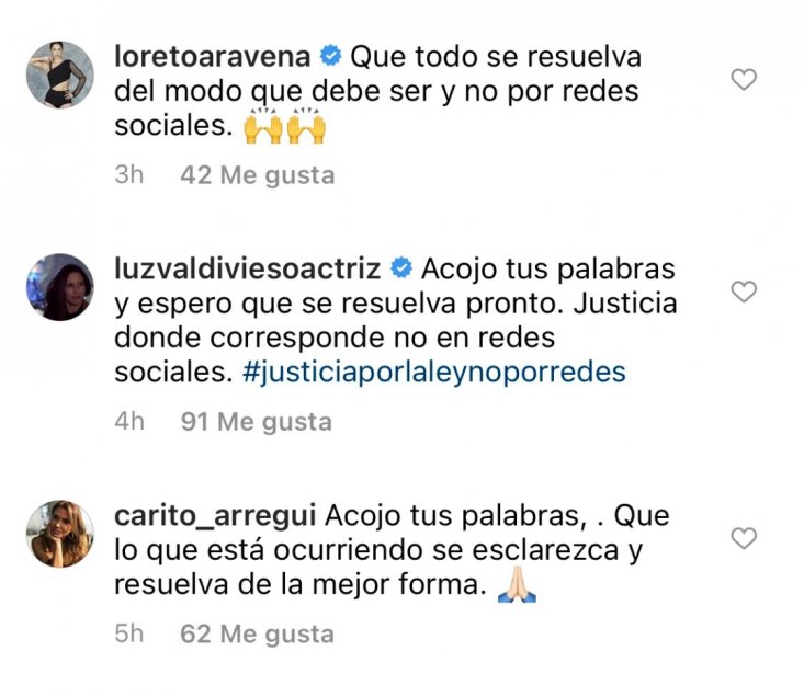 Por su parte, Valdivieso comentó: "Acojo tus palabras y espero que se resuelva pronto. Justicia donde corresponde no en redes sociales. #JusticiaPorLaLeyNoPorRedes".
