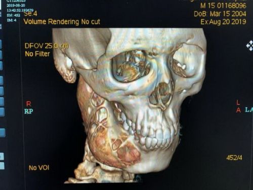 Fueron sus familiares quienes lo obligaron a que fuera a un dentista. Tras una radiografía, detectaron que tenía un ameloblastoma.