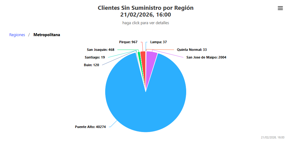 Durante la tarde de este sábado, la Superintendencia de Electricidad y Combustibles (SEC) informó que actualmente hay más de 44 mil clientes sin luz en la Región Metropolitana.