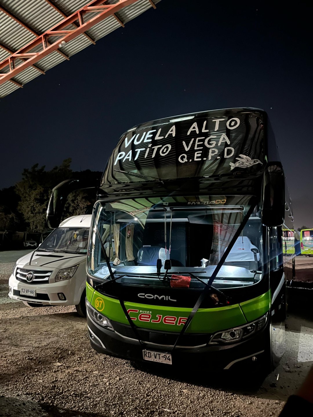 Los trabajadores de la empresa Cejer también rindieron un homenaje a Vega, pintando la frase "Vuela alto, Patito Vega Q.E.P.D." en uno de los buses.