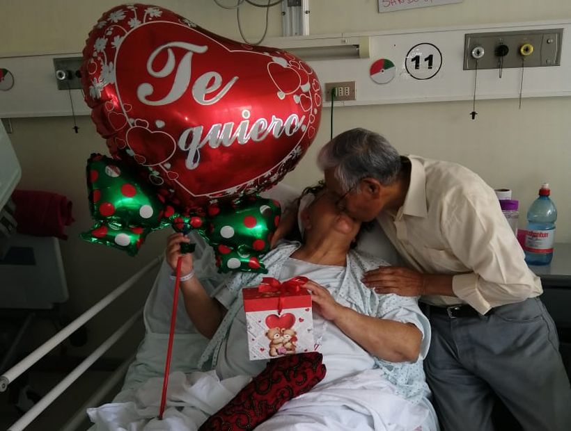 La mujer se encontraba internada hace más de un mes en el Hospital de Iquique por problemas a la salud. La emoción que le provocó el gesto de su marido la hicieron olvidar por un momento su estado.