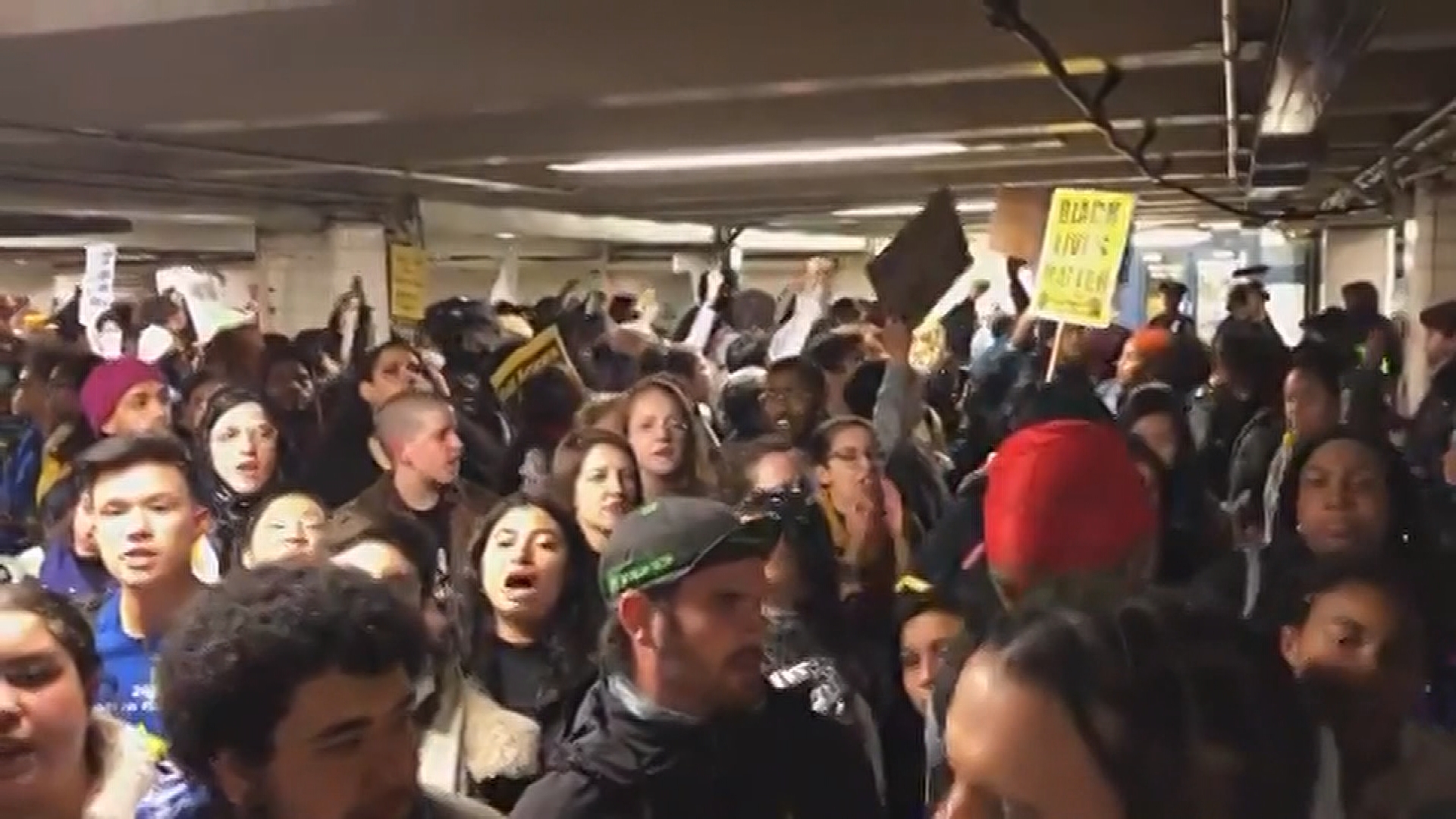 Este episodio fue el detonante para que jóvenes norteamericanos protestaran este viernes, donde incluso hubo presencia chilena. Entre las decenas de stickers que pegaron en la estación, apareció uno del perro chileno llamado “Matapaco”.