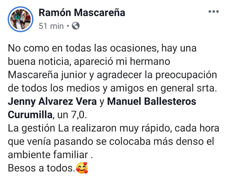Lee también: Preocupación por boxeador chileno desaparecido en la frontera de México con Estados UnidosSu hermano, del mismo nombre que el boxeador, comentó a través de Facebook la buena noticia.